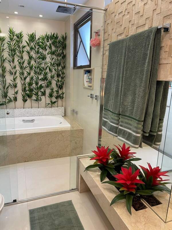 O apartamento conta com ar-condicionado, banheiro social, dormitórios com armários, estar íntimo, hidromassagem, jardim de inverno, lavabo, suíte master, sala de jantar, sala de TV, vista panorâmica e banheiro de empregada.