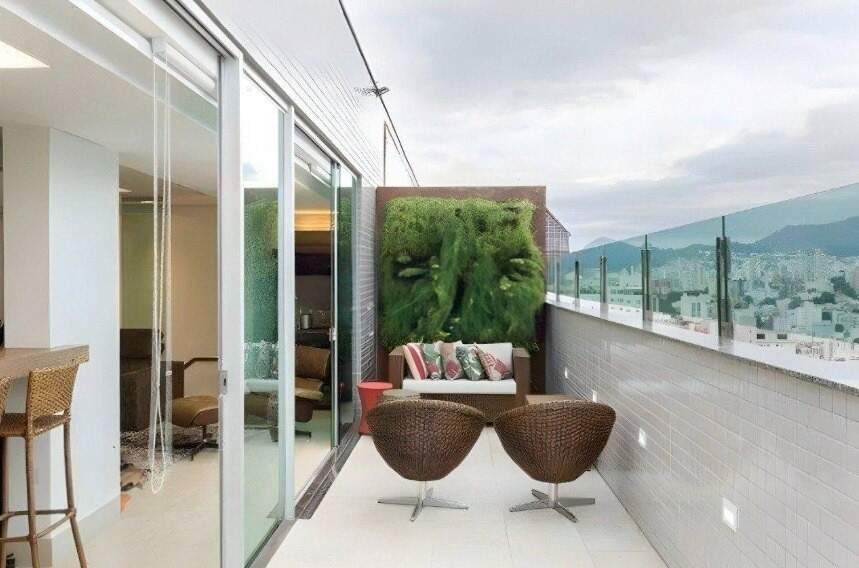 Espaço gourmet, integrado a churrasqueira, fogão, geladeira e cervejeira. Sala Home-Theater, e banheiro completo no 2o nível da cobertura. Área externa com jardim vertical e área lounge de contemplação e relaxamento, mesa externa, e deck externo com linda piscina e espreguiçadeiras. Jardim compondo o ambiente.