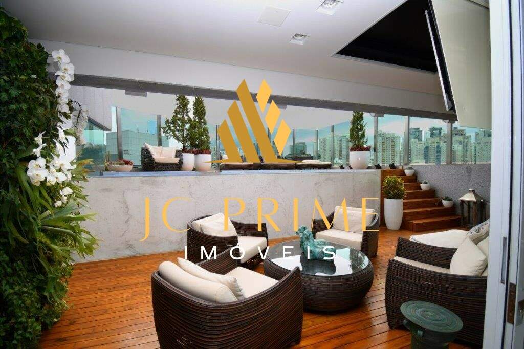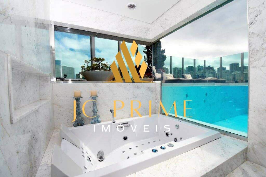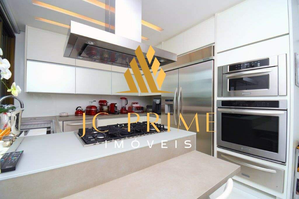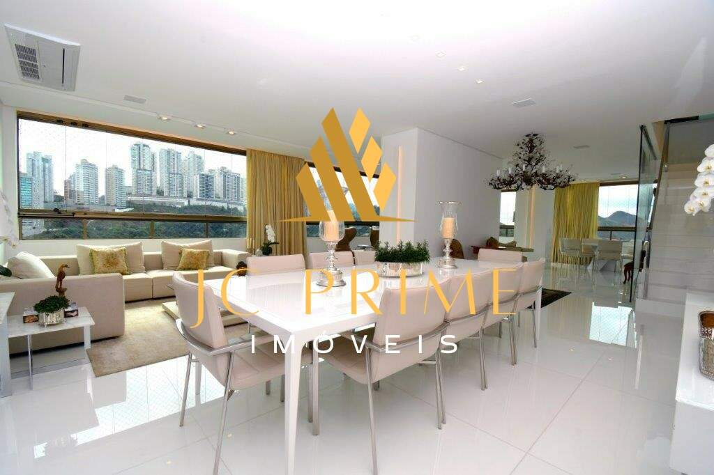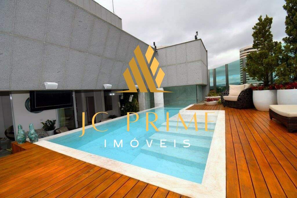 Cobertura com área privativa de 560,00m² com elevador, salão para 04 ambientes (estar, jantar e estar da lareira), varanda integrada com as salas, tudo com cabeamento integrado e controlado por Tablet, 05 suítes, sendo 01 máster com closet, cozinha com copa, área de serviço, dependência completa de empregada, ar condicionado em todo apartamento, sistema de aspiração de poeira com central de recolhimento acomodado em um espaço discreto na área de serviço. Segundo piso: 01 escritório, suíte de hóspede, espaço gourmet, sauna integrada na piscina. Com 07 vagas de garagem, todas paralelas e que cabem até 08 carros, estacionamento para visitantes. Prédio revestido em granito, lazer conta com salão de festas, quadra de tênis, quadra de squash (estar com vestiário), quadra poliesportiva, fitness, pista de caminhada, piscina com raia de 25m e prainha, espaço gourmet, espaço kids, sauna (descanso interligado com a piscina), port cochere, antecâmaras de acesso, sala para motoristas e car wash. Entre em contato e conheça de perto essa cobertura!