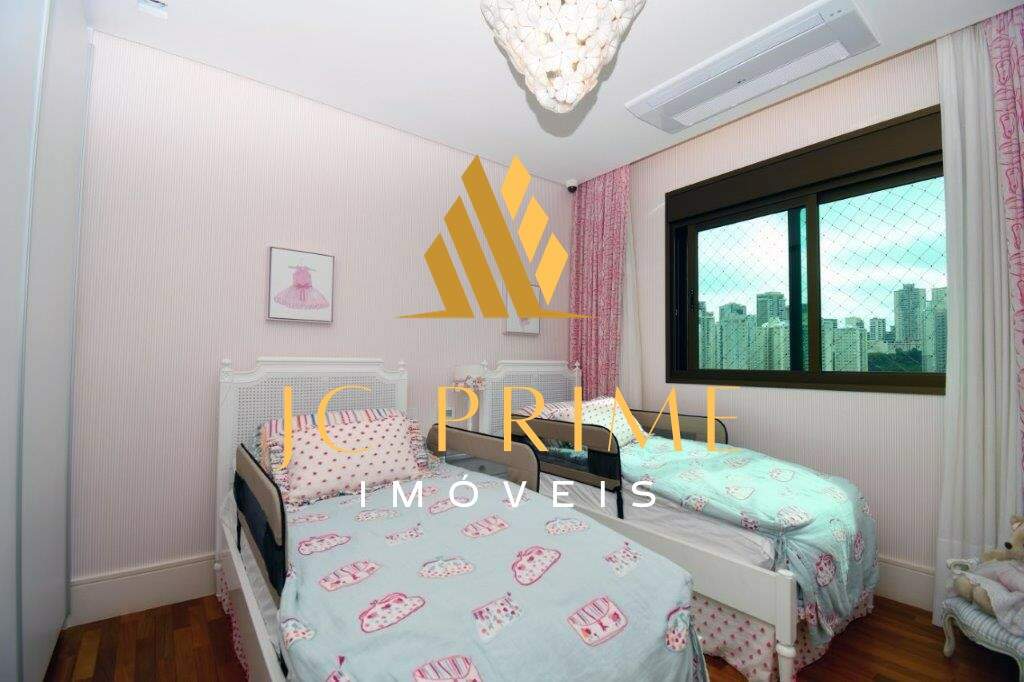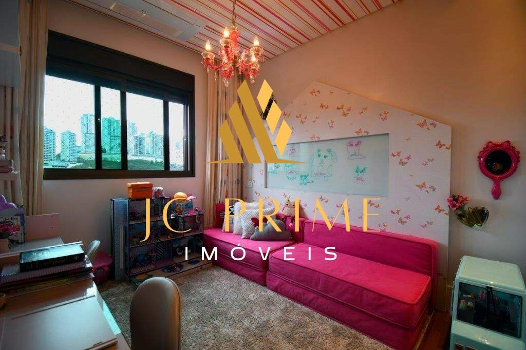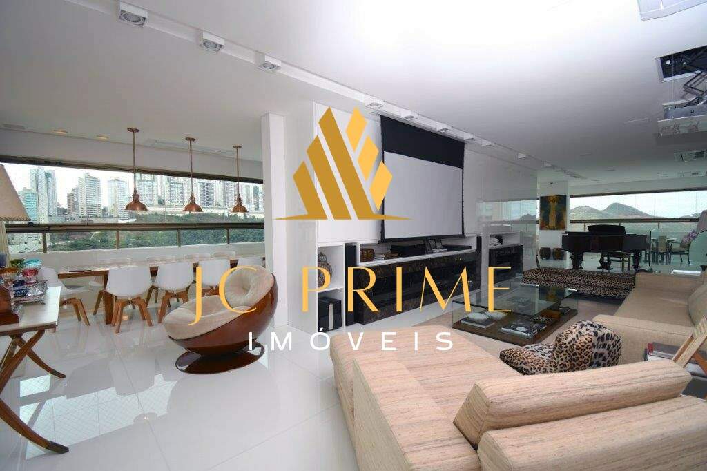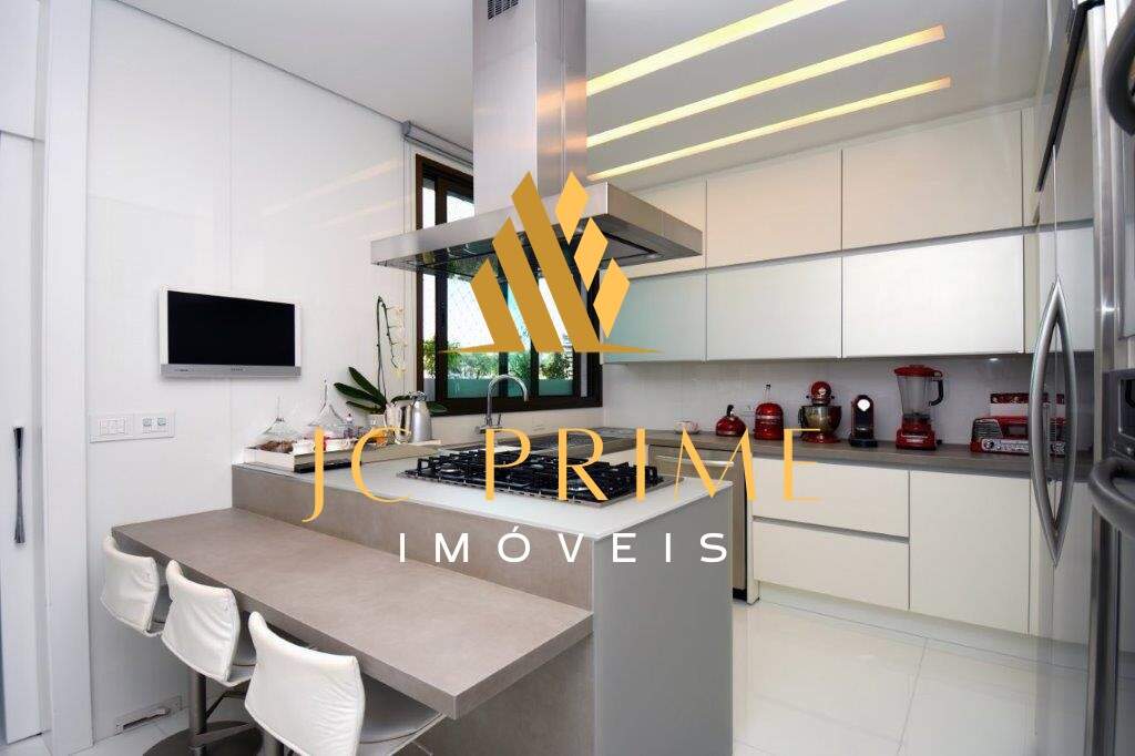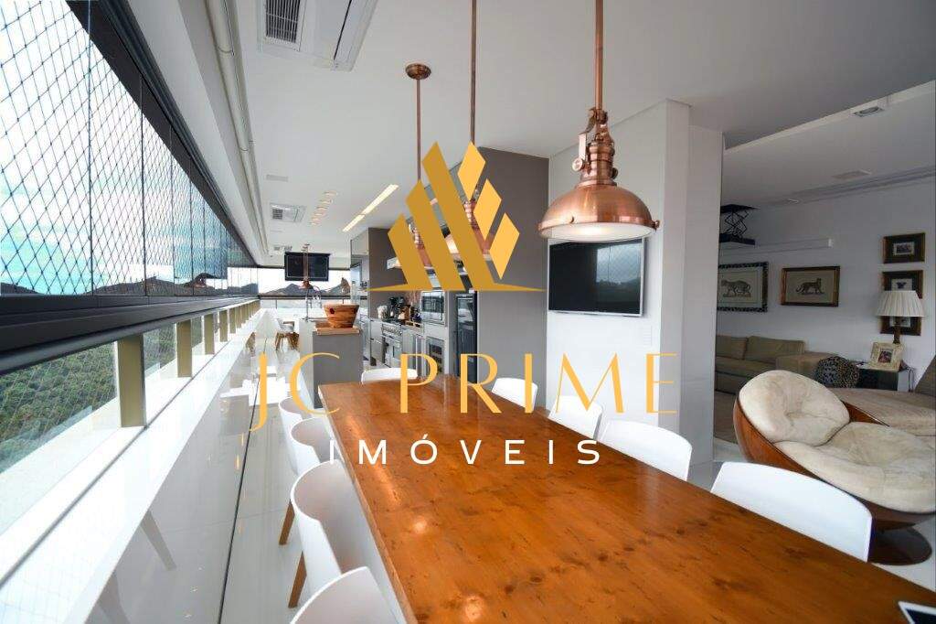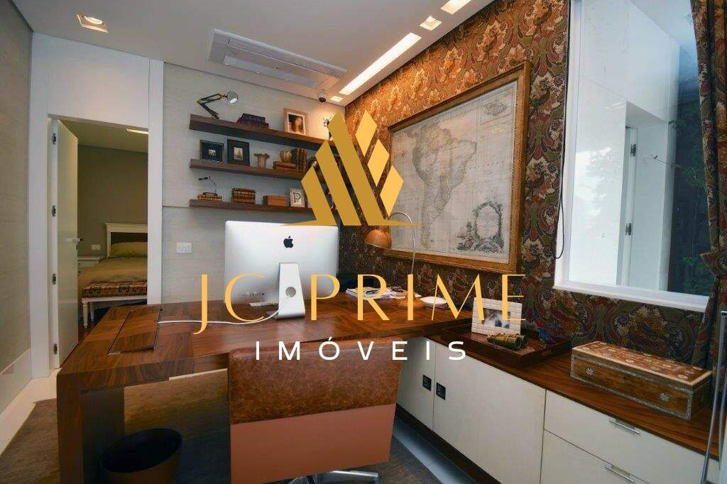 Cobertura com área privativa de 560,00m² com elevador, salão para 04 ambientes (estar, jantar e estar da lareira), varanda integrada com as salas, tudo com cabeamento integrado e controlado por Tablet, 05 suítes, sendo 01 máster com closet, cozinha com copa, área de serviço, dependência completa de empregada, ar condicionado em todo apartamento, sistema de aspiração de poeira com central de recolhimento acomodado em um espaço discreto na área de serviço. Segundo piso: 01 escritório, suíte de hóspede, espaço gourmet, sauna integrada na piscina. Com 07 vagas de garagem, todas paralelas e que cabem até 08 carros, estacionamento para visitantes. Prédio revestido em granito, lazer conta com salão de festas, quadra de tênis, quadra de squash (estar com vestiário), quadra poliesportiva, fitness, pista de caminhada, piscina com raia de 25m e prainha, espaço gourmet, espaço kids, sauna (descanso interligado com a piscina), port cochere, antecâmaras de acesso, sala para motoristas e car wash. Entre em contato e conheça de perto essa cobertura!